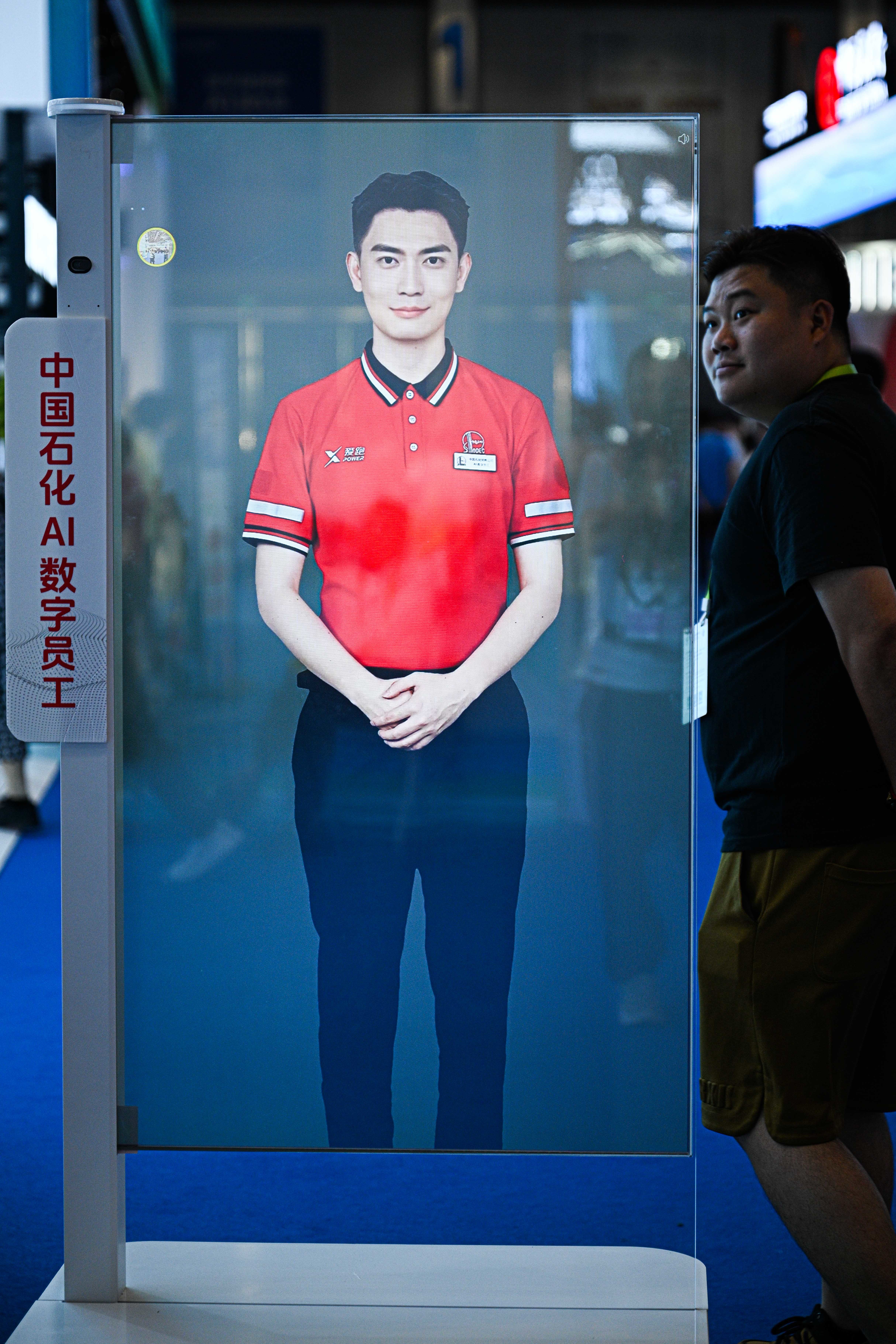 4月14日在第六届消博会现场拍摄的中国石化AI数字员工。